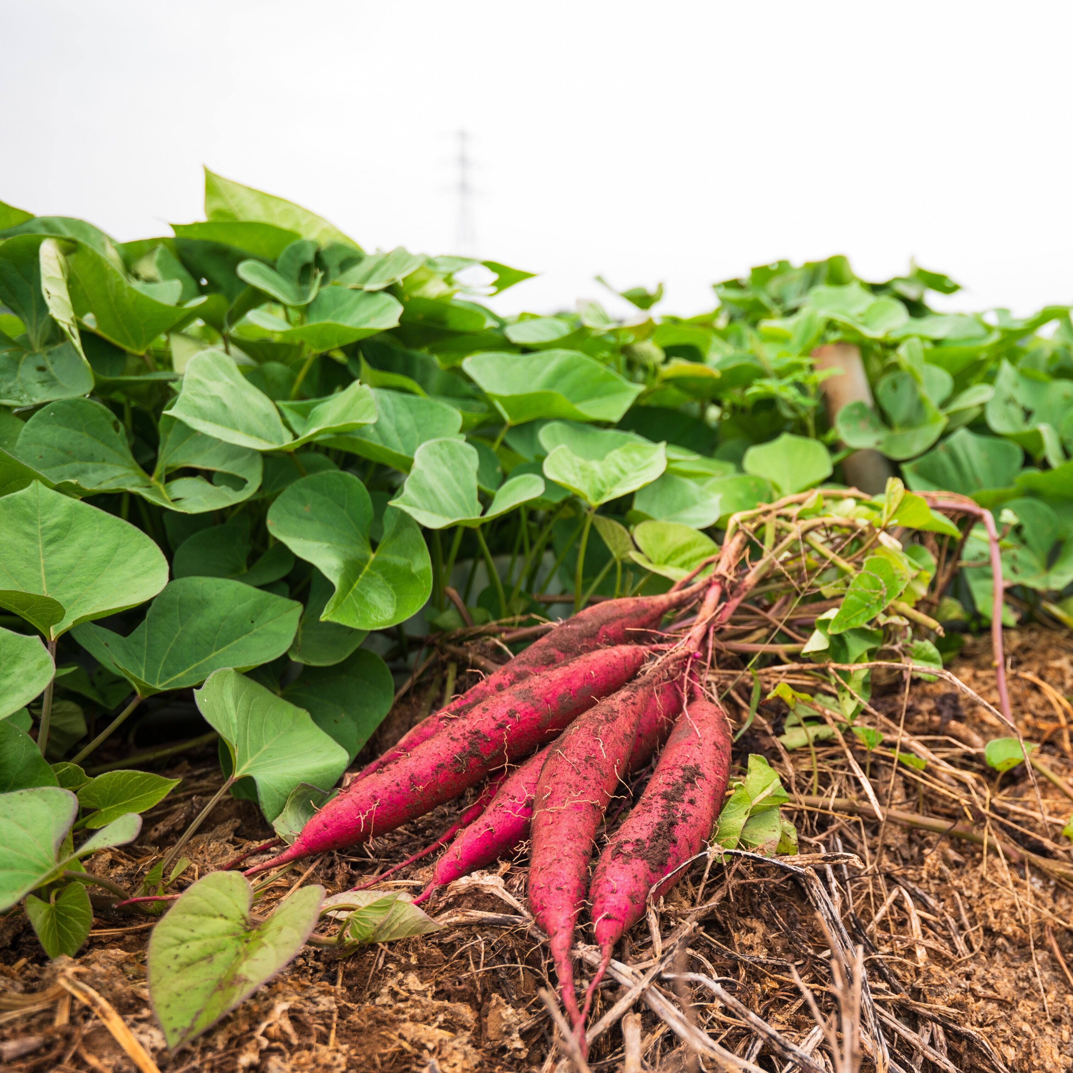 川越産、早川農園さんの「紅はるか」を使用しています。芋のこだわりの前に、先ずは土のこだわりがあります。川越は、もともと関東ローム層の水捌けが非常に良い土壌です。古くは江戸時代から、その痩せた土地をしっかりとした農地にするために❝落ち葉堆肥農法❞を用いて土づくりをしてきました。落ち葉を発酵させて畑に還すという循環型の農法を何百年も採用した結果、今があります。堆肥というのは、土の中の微生物を増やしたり、野菜を作るのに必要な「窒素・リン酸・カリウム」と言われる三大栄養素以外の「微量要素」も多く作り出してくれます。自家製の落ち葉堆肥を混ぜた土は、虫たちの生態系も手伝い さつまいもの育成に抜群の環境です。肥沃な土壌でのびのびと育った「紅はるか」は、そのままでも大変美味しいですが、温度と湿度を厳しく管理しながら、2か月以上の貯蔵熟成期間を経て糖度を高めていきます。収穫したてよりもさらにグッと甘くなった状態で、レストランにやってきます。