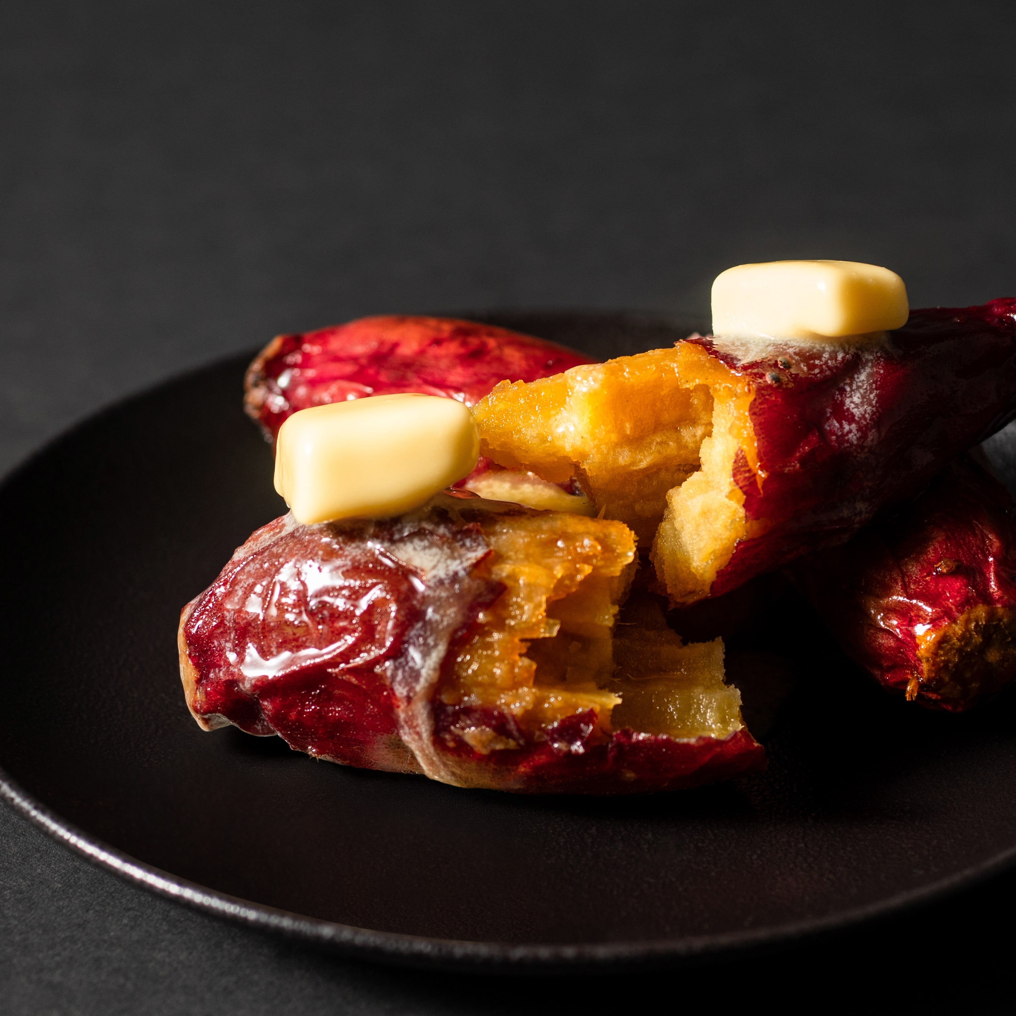 温めた薪焼き蜜芋に、バターやバニラアイスをトッピングすると、お子様から大人まで愉しめるデザートとなります。そのままでも、アレンジしても美味しくお召し上がりいただけます。
