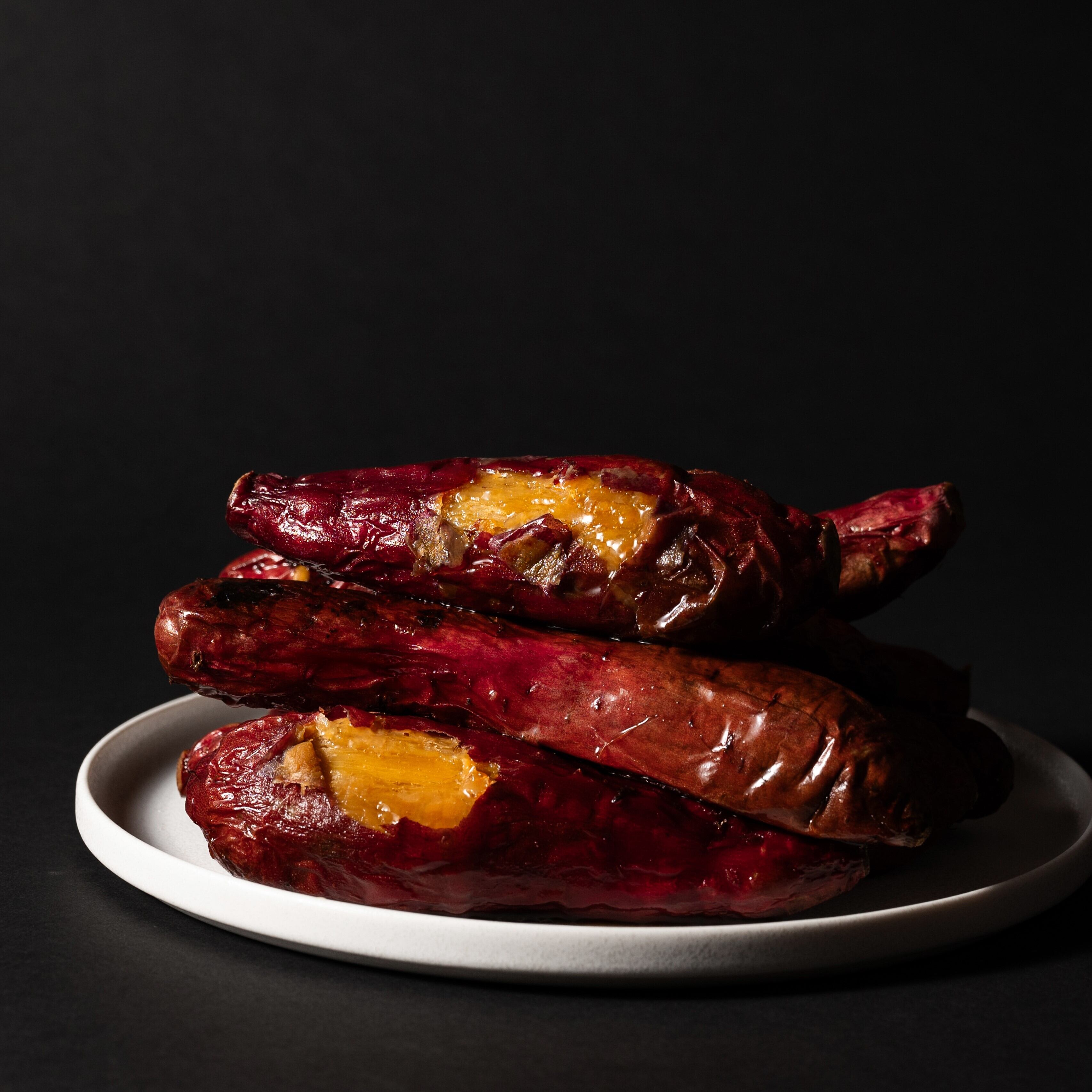 2年の歳月をかけて辿り着いた、川越薪火料理in the parkの自信作『薪焼き蜜芋』。川越の名産「紅はるか」を、伝統的な落ち葉堆肥農法で育てた早川農園さんから仕入れ、72時間かけてじっくり蜜芋化。薪火の遠赤外線で焼き上げることで、ねっとり濃厚な甘みと香ばしい薫香が生まれます。手間ひまと素材にこだわり抜いた唯一無二の焼き芋を、ご自宅で。温めるだけでとろける甘さが広がり、バターやアイスを添えれば絶品デザートにも。ぜひこの感動の味をお試しください。