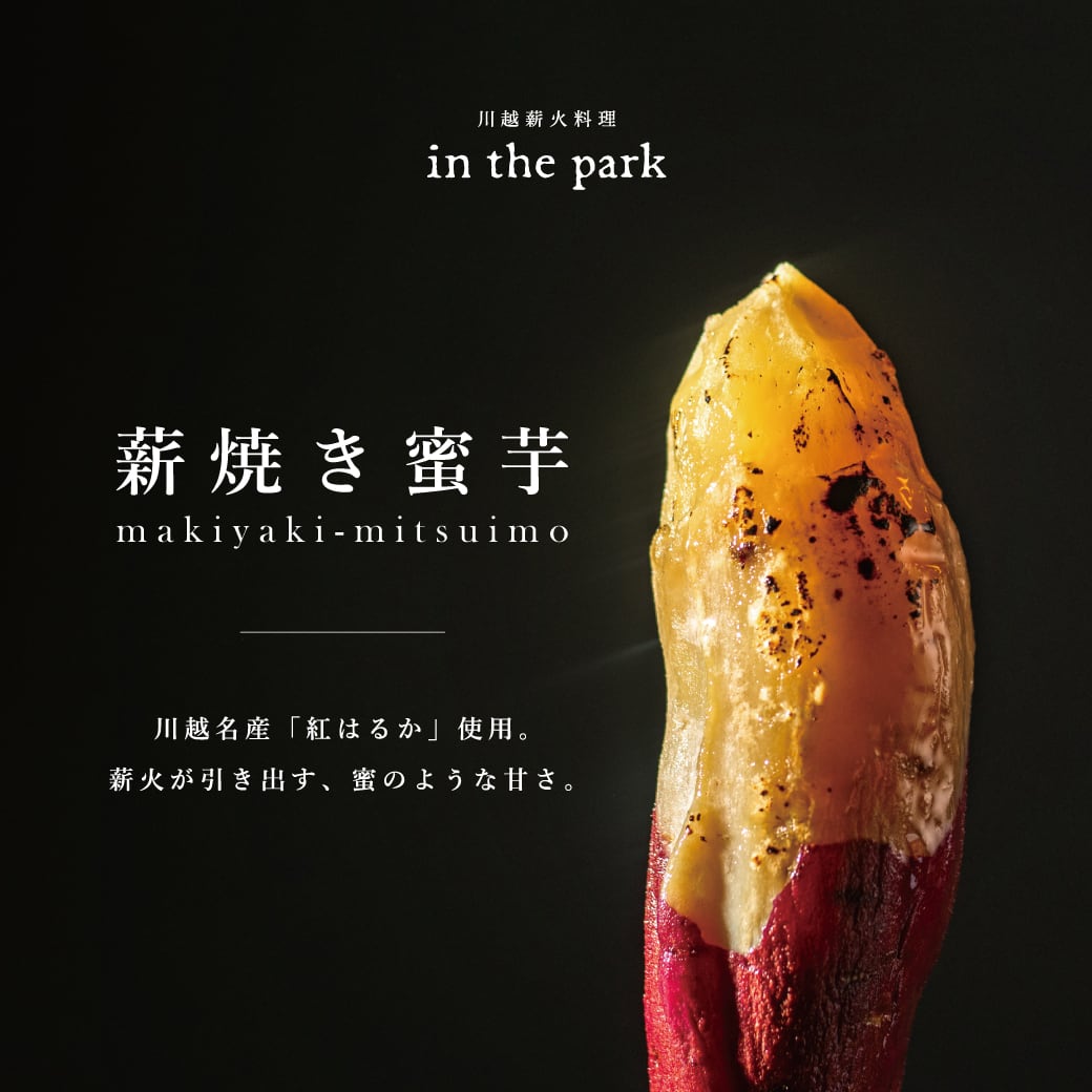 今回、その人気の焼き芋を更に美味しく召し上がっていただく為に、これまで以上に素材と調理法を吟味追求し、蜜芋づくりを目指しました。薪焼き蜜芋誕生まで2年、川越の数あるさつまいもの中から、選りすぐりの芋に出逢えたこと、そして美味しく調理する秘訣を習得したことで、やっと皆様にお届けできるタイミングを迎えました。薪焼き蜜芋は、工夫を重ねた「川越薪火料理in the park」の自信作です。薪の薫りが香ばしく ただものでは無い あまーぃ蜜芋を是非お召し上がりください。